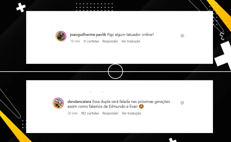 Outro, empolgadíssimo com a publicação, escreveu: “Algum tatuador online?”. Já outro, brincou: “Não carregou aqui no 5G de tão pesada que é essa foto”, escreveu.