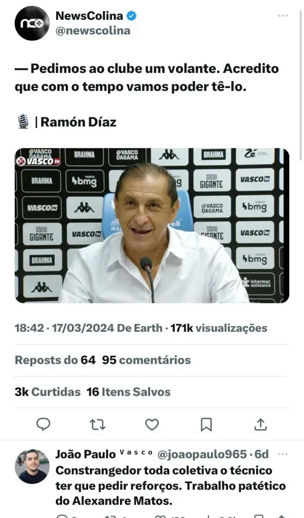 O dizem os torcedores do Vasco: