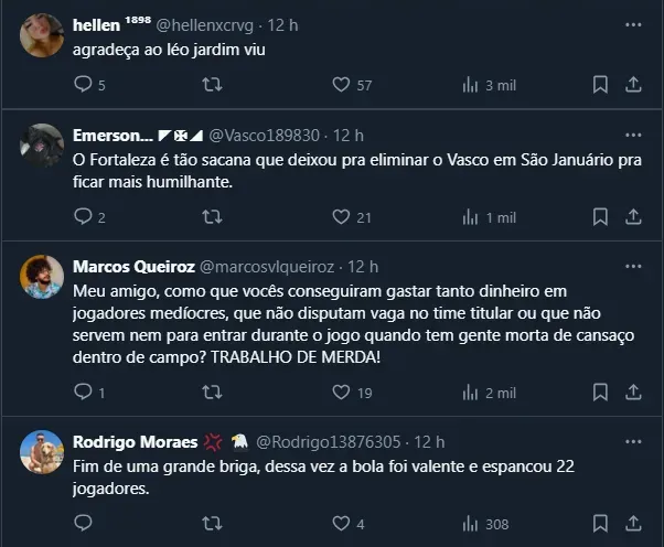 Vasco fica no empate sem gols com o Fortaleza e torcida repercute situação do gramado do Castelão