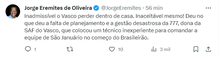 "Obrigação é ganhar no caldeirão". Torcida do Vasco inconformada com o resultado, protesta contra o time.