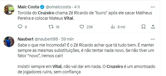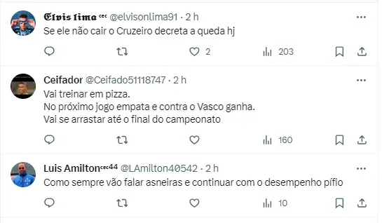 Os torcedores perderam a paciência com seu time com o revés em pleno Mineirão e pegaram no pé do treinador e de alguns jogadores, como Wesley e Mateus Vital. Isso causou uma decisão da cúpula cruzeirense.