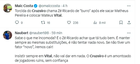 Situação acabou sendo divulgada após derrota do Cruzeiro para o Internacional, em pleno Mineirão, em partida válida pelo Campeonato Brasileiro
