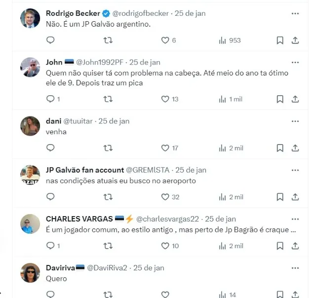 Nas primeiras partidas do Campeonato Gaúcho, o atacante João Pedro Galvão tem sido o centroavante do técnico Renato Portaluppi. Apesar disso, o nome ainda não passa confiança na diretoria e também na torcida.