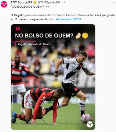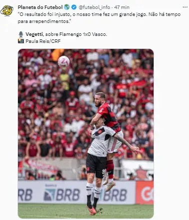 Na postagem, ele escolheu uma foto em que ele passou pelo defensor e o deixou caído no chão no lance. Vegetti é uma peça-chave na recuperação do Vasco na temporada e desde que chegou foi o principal artilheiro da equipe. O medalhão sul-americano segue sendo uma esperança para ajudar o Gigante da Colina a não ser rebaixado para a Série B.