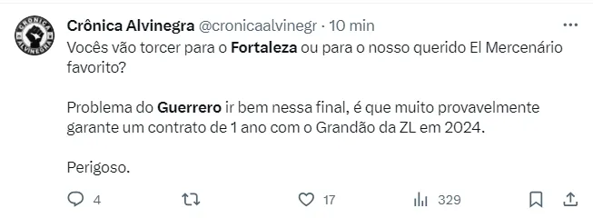 Até aqui na LDU, Guerrero marcou 3 gols em 12 jogos. Hoje, o torcedor do Laion espera que a pontaria do atacante esteja pra lá de descalibrada, para quem sabe, o Fortaleza fazer história e fincar de vez sua bandeira no cenário continental.