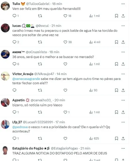 “Fernando está no Sevilla desde 2019 e é tratado como ídolo por lá. No meio do ano o Vasco tentou repatriá-lo, mas sem sucesso”, continuou o jornalista em uma publicação no seu Twitter.