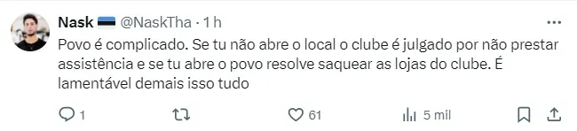 Entretanto, alguns ‘espertões’ estão aproveitando a crise no Rio Grande do Sul para cometer crimes. Na manhã deste domingo (5), o jornalista Edu Andriotti divulgou um vídeo em que mostra pessoas saqueando a loja Grêmio Mania, na Arena do Grêmio.