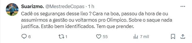 O vídeo pode ser conferido logo abaixo. Minutos depois Edu, em suas redes sociais, escreveu que o “Grêmio ainda não tinha ideia do prejuízo com o saqueamento da Grêmio Mania”.