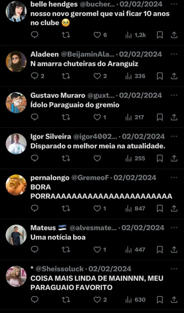 A prorrogação do vínculo foi comemorada pela torcida, visto que o jogador foi um dos principais destaques da equipe em 2023. Para muitos, o paraguaio só não foi mais decisivo do que Luís Suárez.