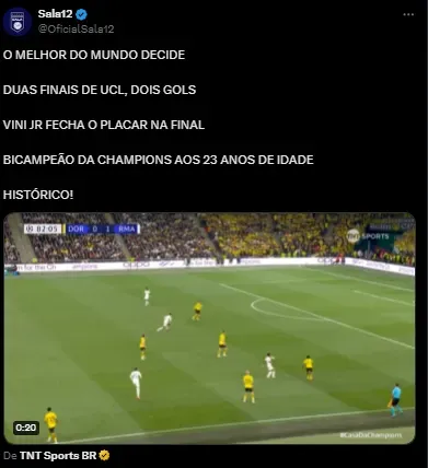 Web consagra Vini Jr como o melhor jogador da temporada após título da Champions