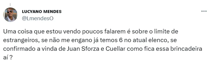 O nome de Cuellar já foi aprovado pela comissão técnica e também pela diretoria do clube, restando “apenas” o aceite dos responsáveis pela SAF, a 777 Partners. O já famoso ‘crivo’ é o único empecilho no momento.