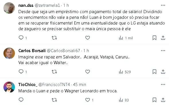 Para que a transferência seja concretizada, o São Paulo espera que o Vitória assuma a maior parte do salário do jogador. Luan renovou contrato com o Tricolor Paulista até 31 de dezembro de 2026, com uma promoção salarial.