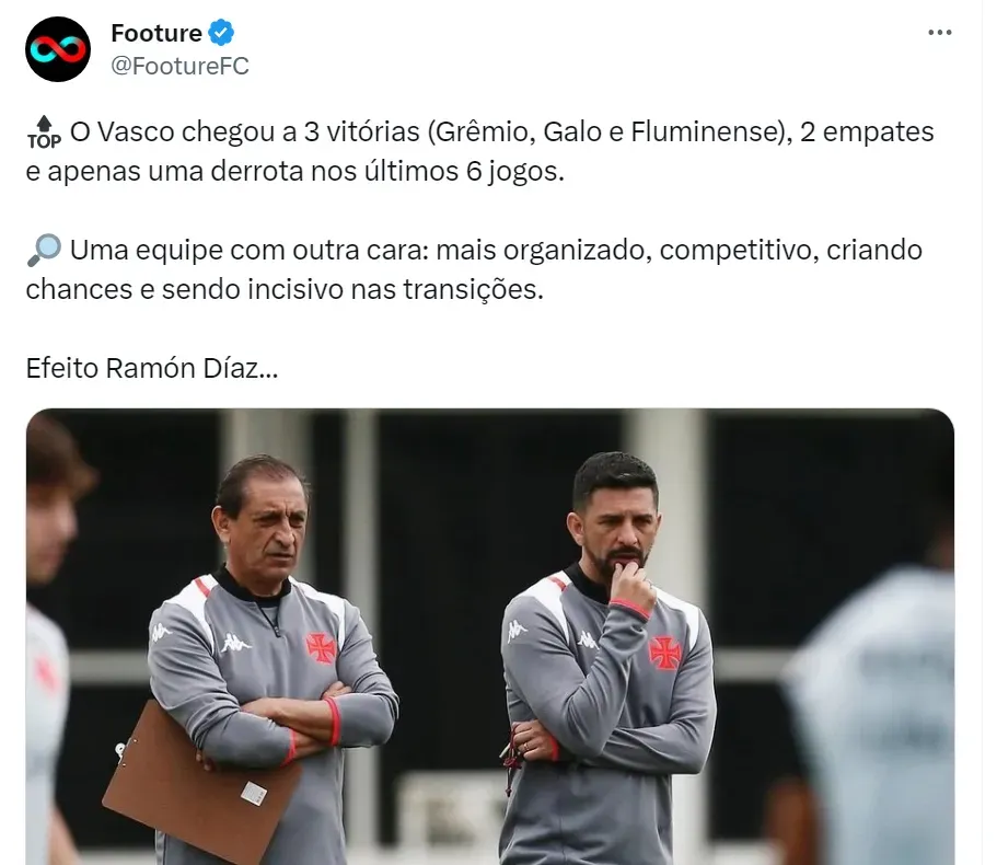 Após um início de competição muito, o que culminou na demissão de Maurício Barbieri, o Vasco ontratou o treinador argentino Ramón Díaz e começou uma reação no Campeonato Brasileiro para sair da zona do rebaixamento. Nos últimos seis jogos, o Gigante da Colina conquistou 11 pontos e aumentou suas chances de permanecer na Série A.