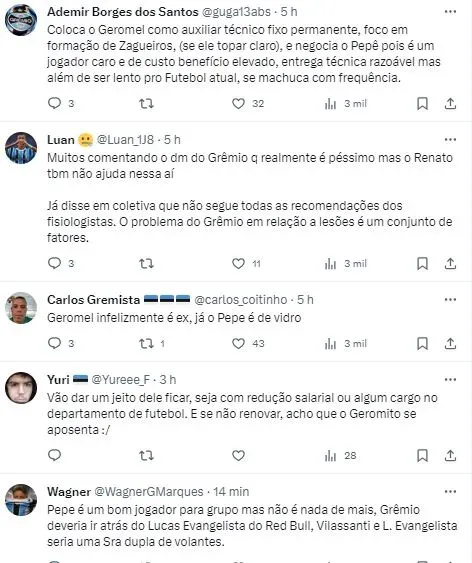 No entanto, Geromel tem situação complicada e há fortes suspeitas que ele retorne apenas em 2024. Para substituir o xerife, que vive um pesadelo de lesões em 2023, ao todo, o medalhão fez apenas sete jogos na temporada.