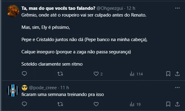 Não à toa, claramente apareceu longe das condições físicas ideais, o que acabou causando um enorme burburinho entre os gremistas. Enquanto alguns defendem a readaptação, outros criticam o fato de não voltar 100%.