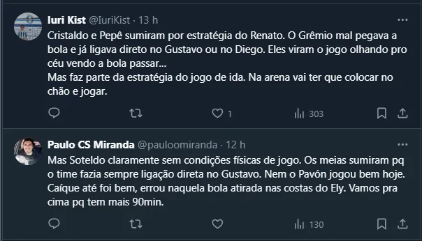 “Vamos jogar com a nossa torcida. Estamos tranquilos. A decisão ficou para a nossa casa”, disse o camisa 7 na saída do gramado. Entretanto, a partida pode se tornar muito perigosa para o Tricolor.