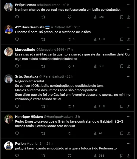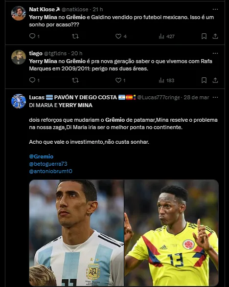 “É certo que o Grêmio busca zagueiros, mas o nome do Mina não está sendo falado justamente porque ele mudou de clube há pouco”, completou o jornalista JB Filho, afirmando que não haverá negócio.