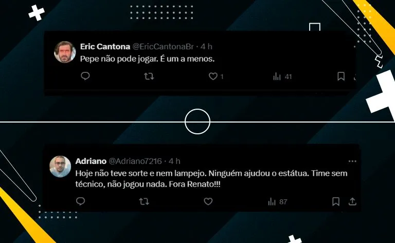 Um torcedor comentou: “Perdemos porque jogamos mal, mas por que Renato manteve Dudu Queiroz e Pepê em campo o jogo inteiro? Não perdemos há cinco jogos, e já era esperado uma derrota com essa escalação.” Outros torcedores expressaram frustração com o desempenho de Pepê: “A única coisa positiva foi a velocidade e o drible de Zé, que pode se tornar um bom titular….”