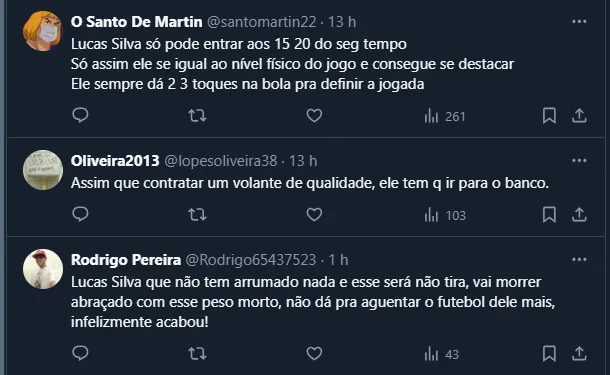 Lucas Silva é criticado pela torcida