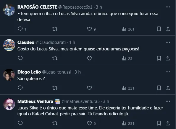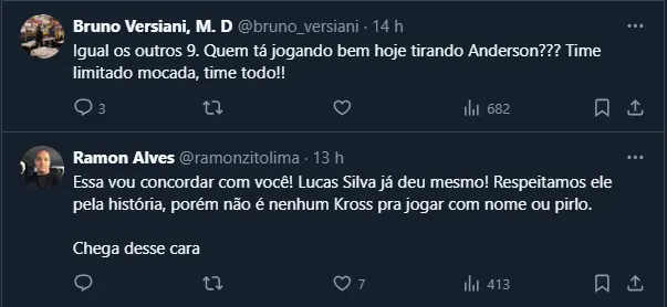 Após o término do jogo, inúmeros cruzeirenses foram às redes sociais e criticaram o momento vivido pelo camisa 16. Inclusive, a falta de velocidade do atleta foi um dos temas mais recorrentes.