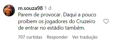 Na primeira vitória da Raposa no estádio do rival, o meio-campo Felipe Machado provocou o Galo ao final da partida, com a menção de que estaria jogando milho no gramado da Arena.