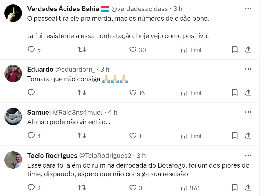 O site Bahia Notícias informou que Cuesta decidiu jogar no time baiano e busca uma rescisão de contrato com o Alvinegro de General Severiano. O vínculo do atleta com o Fogão vai até o fim de 2024.