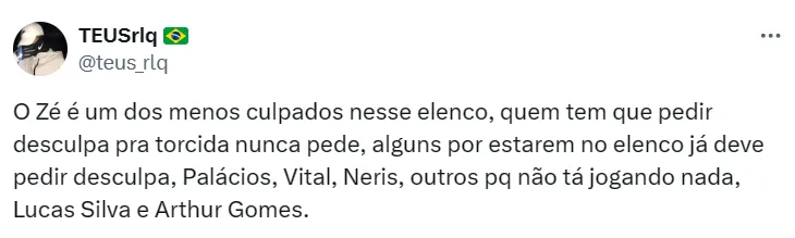Nesta segunda-feira (11), Zé Ivaldo foi às redes sociais para se desculpar com o torcedor cruzeirense. No texto, o zagueiro diz que voltou ao time mineiro para fazer história e diz que vai melhorar.