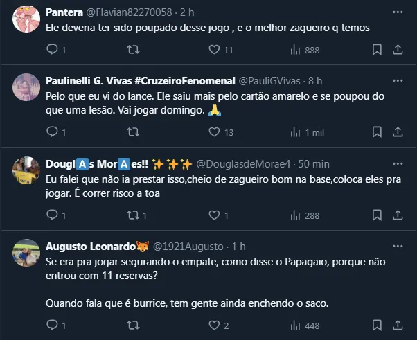 Vale frisar que o jogador já havia recebido uma cobrança do técnico cruzeirense por conta do alto número de faltas e cartões. Todavia, sua presença em campo mudou a postura do time e ele voltou ao 11 inicial.