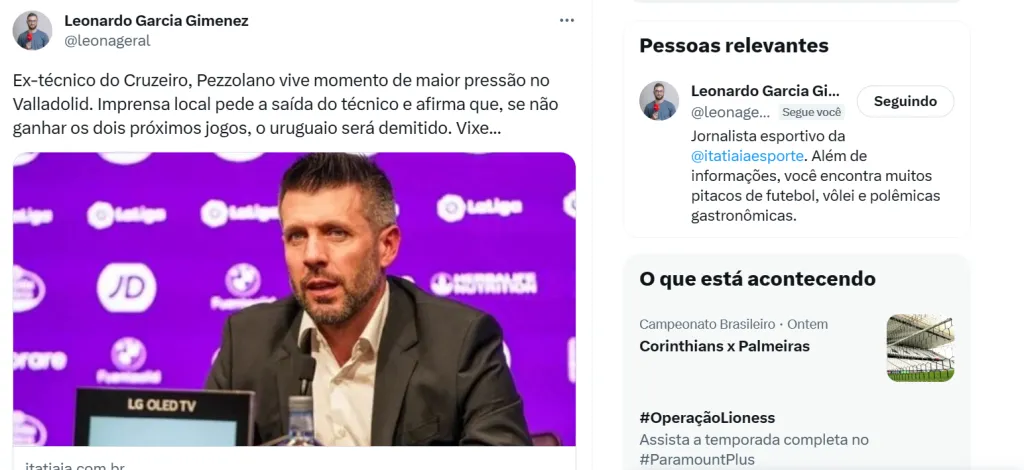 Enquanto isso, o uruguaio Paulo Pezzolano, que deixou o cargo em Belo Horizonte há mais de cinco meses, está em sua trajetória por outro clube de R9: o Real Valladolid, da Espanha. Só que a sua situação já é dramática por lá. Como apontou o colega Leonardo Gimenez, da Rádio Itatiaia, o Valladolid faz péssima campanha na 2ª divisão da Espanha.
