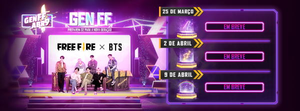 O Free Fire revelou nesta segunda-feira (21) os planos para o evento Gen FF, que traz a participação especial do BTS, um dos maiores ícones do pop mundial, ao game a partir de 23 de março. O grande destaque é o “Free Fire x BTS: O Show“, um programa especial de dois episódios com os 7 integrantes do BTS.