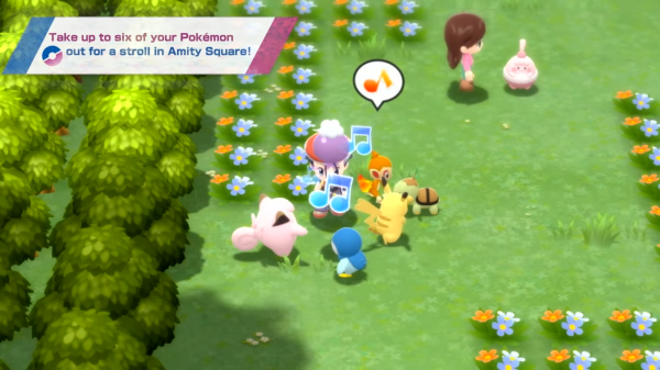 Já sobre os cuidados de pokémon, a criação dos poffins, que aumentam fatores usados para concursos, foi mostrada e será possível criar uma quantidade bem grande de uma só vez. Com seus pokémon felizes, é possível entrar na Amity Square para passear, brincar e até fazer uns poffins especiais.