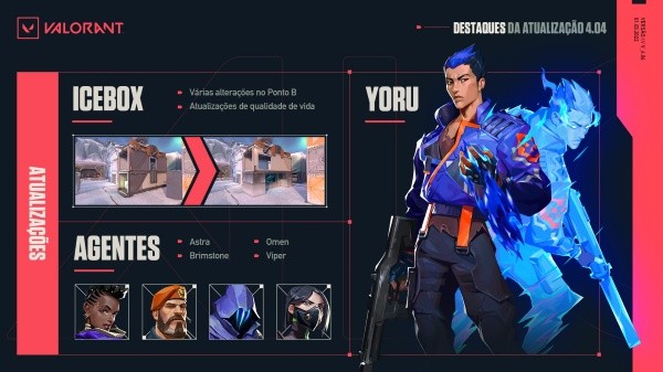 O VALORANT revelou um novo trailer do Episódio 4: Ato II – Disrupção, com destaque para o rework do personagem Yoru e os novos itens do passe de batalha, com destaque para alguns itens criados pela própria comunidade chegando no game.