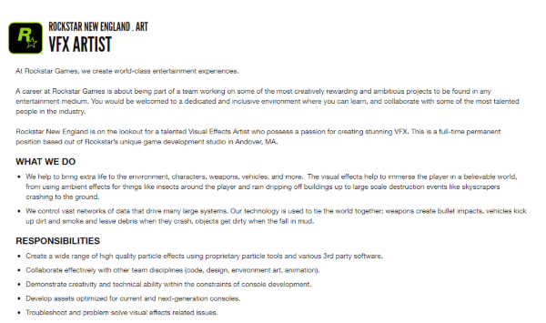 De acordo com a vaga, a empresa está atrás de um VFX Artist (Artista de Efeitos Visuais) para uma posição full-time no estúdio de Andover, Massachusetts. Na descrição, eles buscam alguém capaz de criar coisas como “chuva escorrendo de edifícios até eventos de destruição em grande escala, como arranha-céus“, além de citar toda a tecnologia já existente.