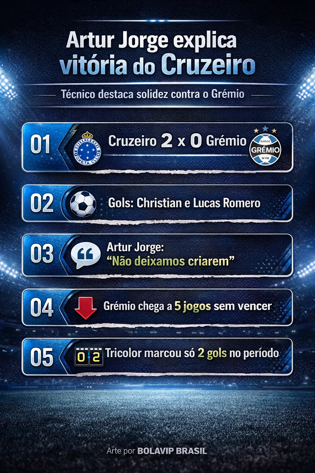 Artur Jorge explica razão da vitória em Cruzeiro x Grêmio no Mineirão: “Não deixamos criarem”