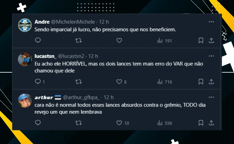 Não à toa, com a confirmação de seu nome para apitar o Gre-Nal 445, a maior parte do torcedor gremista não gostou. Inclusive, foram divulgados alguns vídeos de inúmeros lances que os gremistas consideraram erros contra o Tricolor, algo que repercutiu demais.