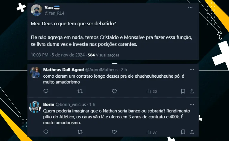 Dito isso, por mais que a temporada atual ainda não tenha acabado, a diretoria já pensa em 2025 e alguns nomes começam a ter a permanência debatida. Além de Pavón, outro nome que pode estar de saída é o do meia Nathan.