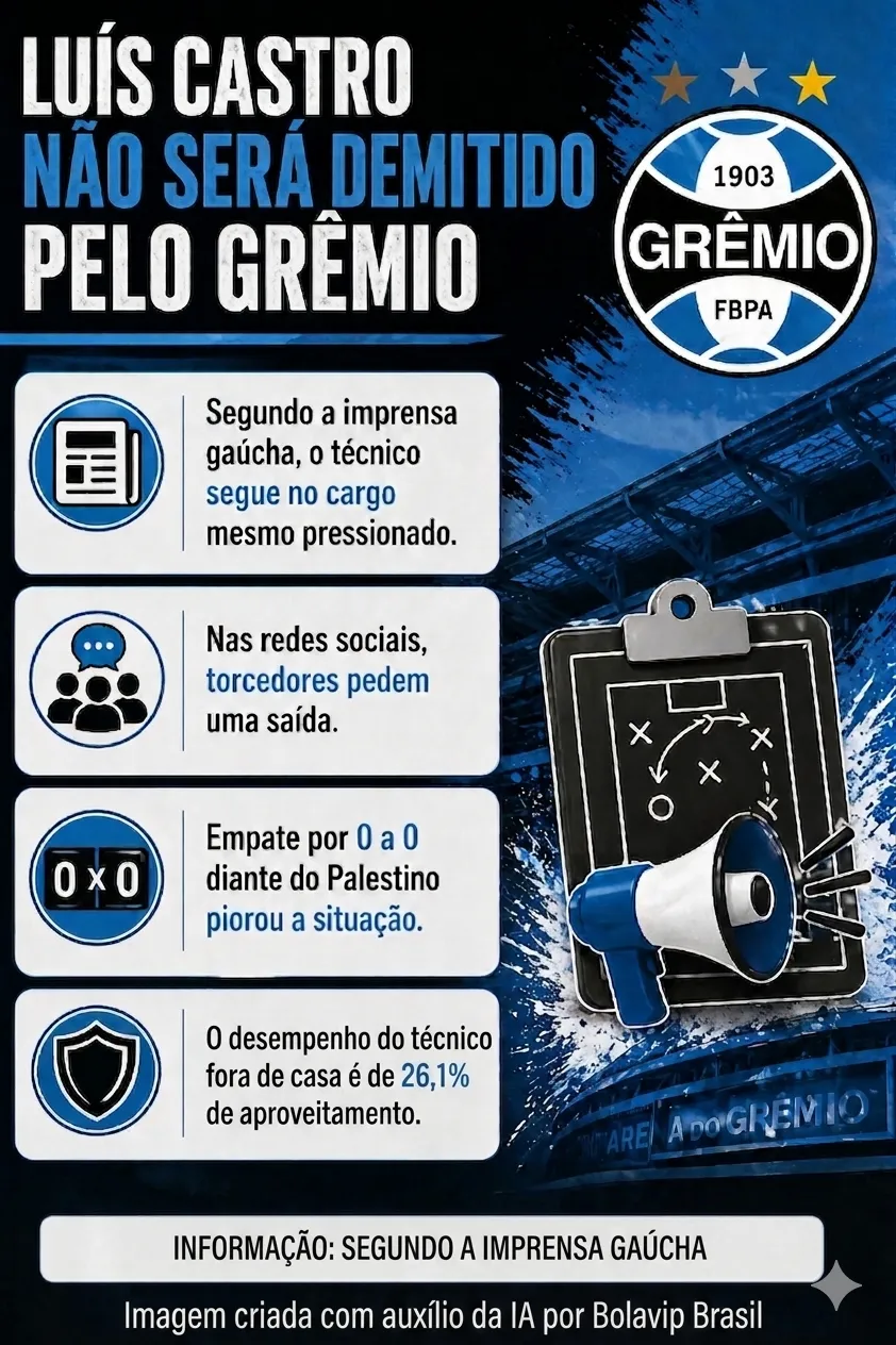 Luís Castro demitido tem martelo batido e treinador será mantido no cargo pela diretoria do Grêmio