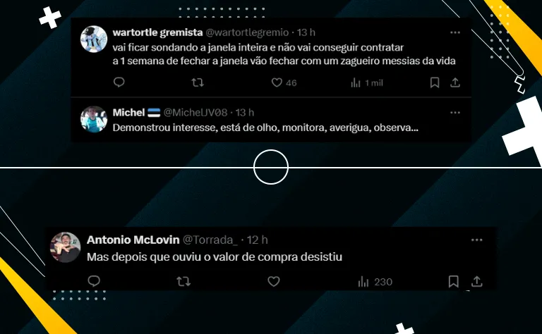 Dessa forma, por mais que seja um jogador de boa qualidade e tenha possibilidade de fechar, o torcedor do Imortal aproveitou a sondagem por mais um nome para criticar ainda mais a gestão de Alberto Guerra.