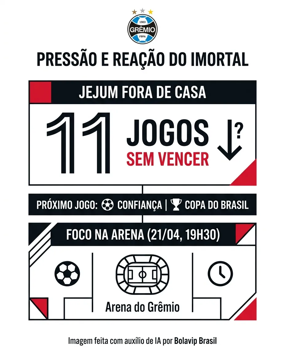 Segundo o portal gremista, a derrota para o Cruzeiro, no Mineirão, aumentou a pressão sobre o Grêmio, que já soma 11 jogos sem vencer fora de casa. Diante desse cenário, o foco passa a ser a Arena, onde a equipe busca construir vantagem no confronto pela Copa do Brasil.