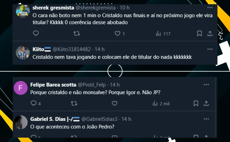 Não à toa, o ex-técnico do Vélez Sarsfield (ARG) resolveu mexer na escalação e definiu algumas mudanças no provável time, como as saídas de Miguel Monsalve e João Pedro, que repercutiram bastante na torcida.