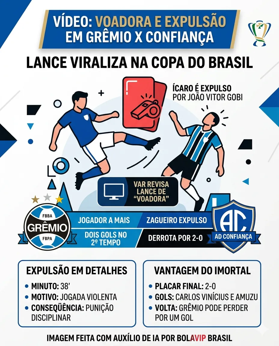 É fato que ele não atingiu o atacante gremista em cheio e, sim, na sequência do movimento após atingir a bola. Tanto que no momento, o árbitro João Vitor Gobi nem optou por dar o cartão vermelho, mas foi chamado pelo VAR e mudou de ideia após rever o lance.