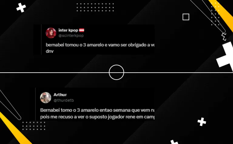 “Bernabei tomou o 3º amarelo, então semana que vem não vou ver o jogo, pois me recuso a ver o suposto jogador Renê em campo”, apontou outro torcedor colorado nas redes sociais, lamentando o desfalque do defensor argentino.