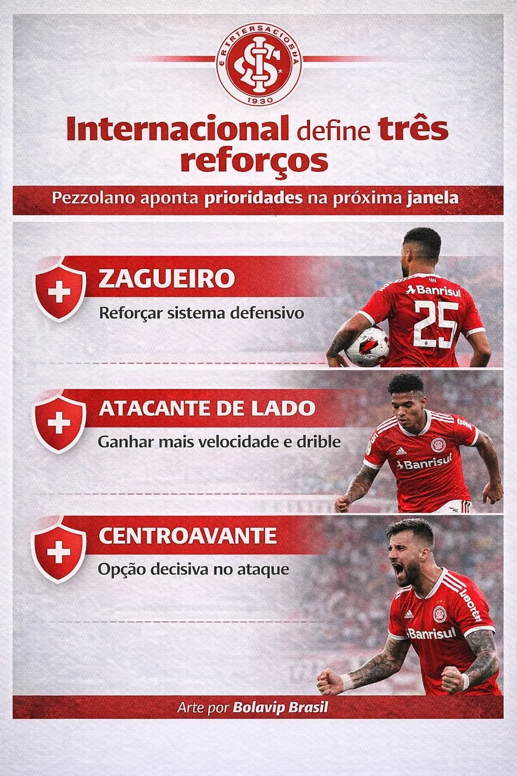 O Internacional já começou a se movimentar nos bastidores pensando na próxima janela de transferências, que abre apenas em julho. Mesmo com a distância no calendário, o técnico Paulo Pezzolano foi direto ao apontar as principais necessidades do elenco.