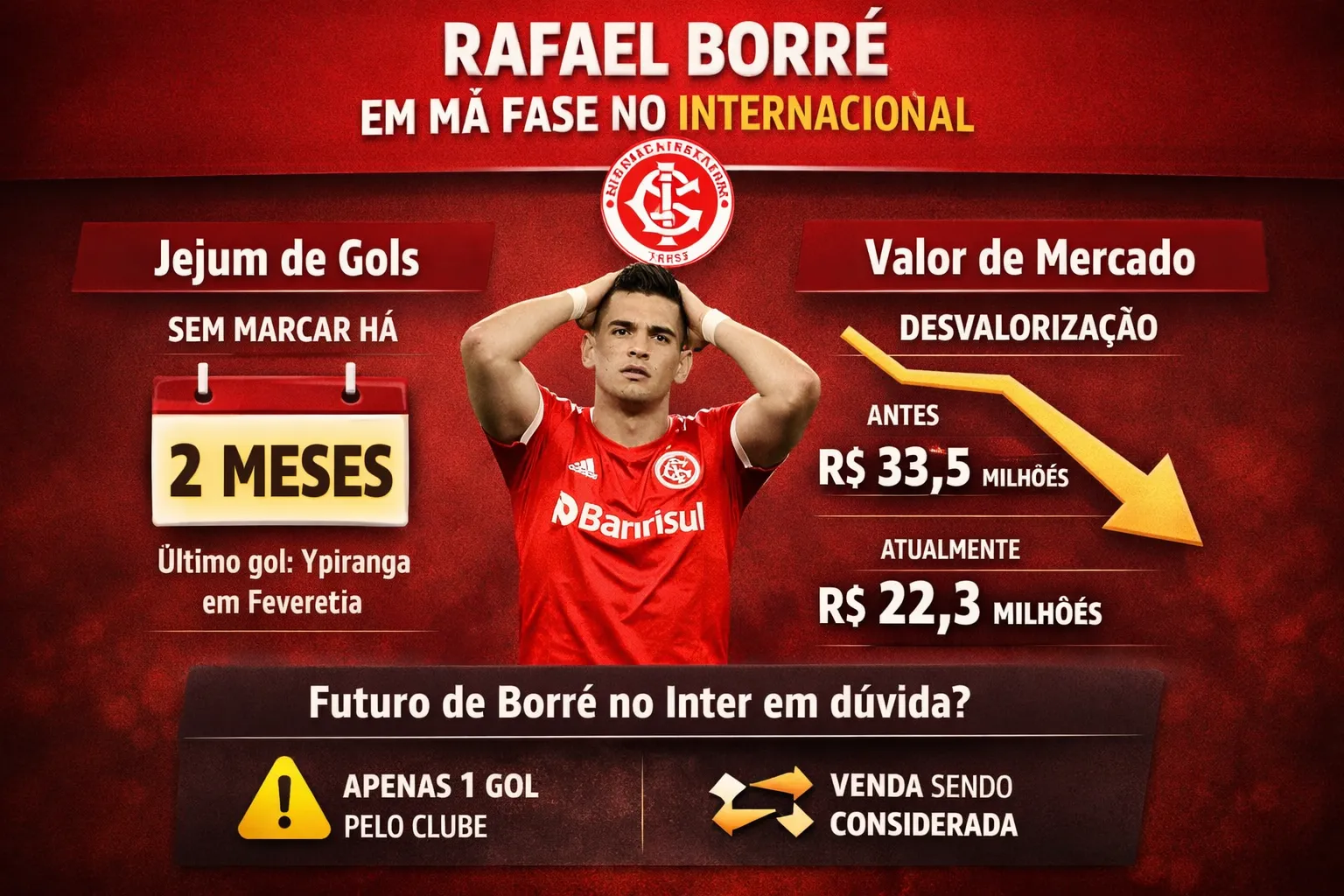 No entanto, o Borré voltou a ter o mesmo desempenho abaixo que teve na temporada passada. Sendo assim, uma possível venda não está descartada, haja vista que o atleta não correspondeu à expectativa desde sua chegada, em 2024.