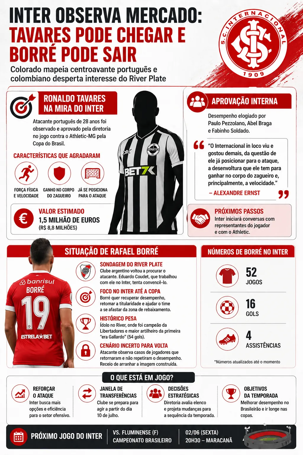 O Internacional já iniciou movimentações pensando na próxima janela de transferências e tem um novo nome no radar para o ataque. Trata-se de Ronaldo Tavares, destaque do Athletic-MG, que agradou à comissão técnica após observação direta recente.