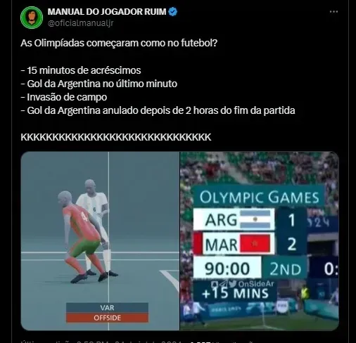 Após a vitória do Marrocos, vários torcedores e perfis de futebol da internet comentaram sobre os desdobramentos da partida, que culminou com a derrota da Argentina no primeiro jogo das equipes nas Olimpíadas 2024.