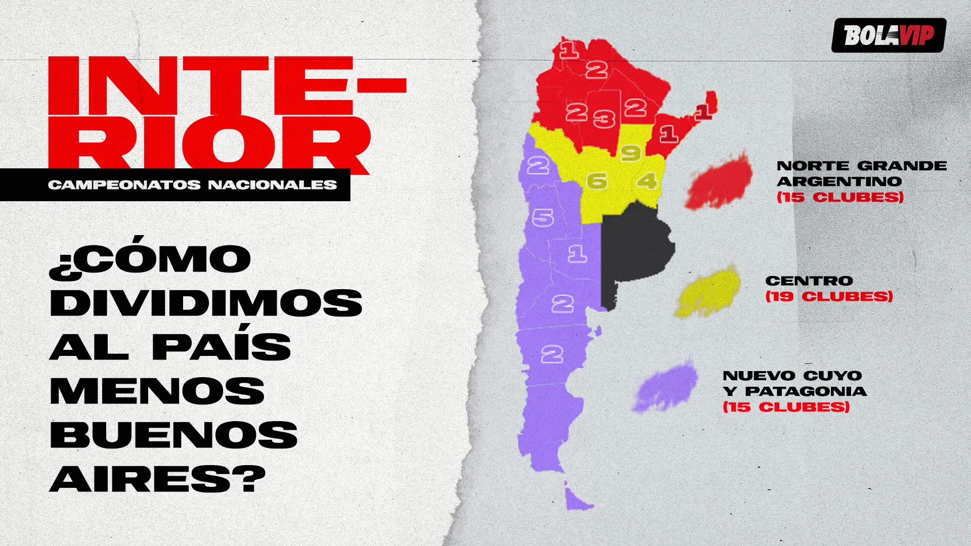 O Campeonato do Interior é dividido em três: Centro, Nuevo Cuyo y Patagonia e Norte Grande Argentino. O primeiro tem 19 equipes, o segundo 15 e o terceiro 12.