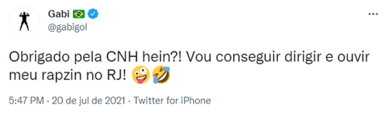 Em seu Twitter, o camisa 9 agradeceu ao soteropolitano por ter encontrado a sua CNH: “Obrigado pela CNH, hein?! Vou conseguir dirigir e ouvir meu rapzin no RJ!”. Se Gabriel não estivesse com a delegação rubro-negra em Brasília, ele estaria “fora da lei” caso fosse ao treinamento no Ninho do Urubu de carro. Agora, tudo se resolveu.