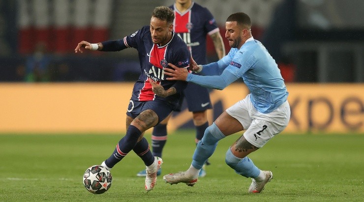 Neymar e Walker em disputa de bola (Foto: Getty Images)