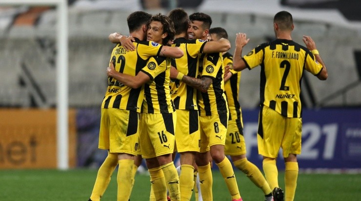 Jogadores do Peñarol comemoram gol pela Copa Sul-Americana (Foto: Getty Images)